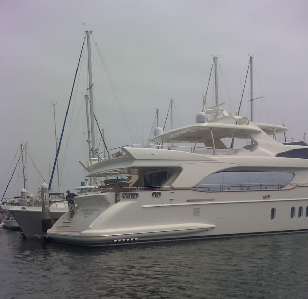 The first day out we learned how to maneuver the boat under power and cruised up and down Santa Barbara Harbor. There are some HUGE boats there and some famous owners as well. I took a couple of photos with my phone. There were a couple of nice boats still in the harbor: